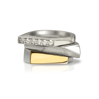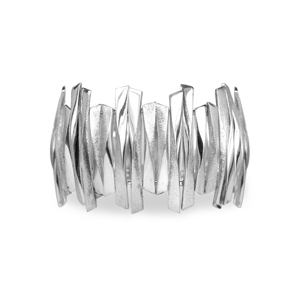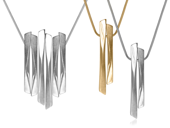 Pamela's designs are distinguished by stylized curves, dramatic angles, and captivating twists. All jewellery features a contrasting high-polish and textured finish to accentuate its striking facets.